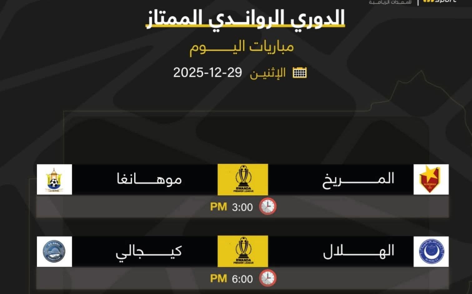 وتحظى مواجهتا اليوم بمتابعة جماهيرية واسعة، في ظل الاهتمام المتزايد بمشاركة الهلال والمريخ في الدوري الرواندي، وسط تطلعات جماهير الناديين لرؤية أداء قوي ونتائج تعكس تاريخ الفريقين وثقلهما القاري.