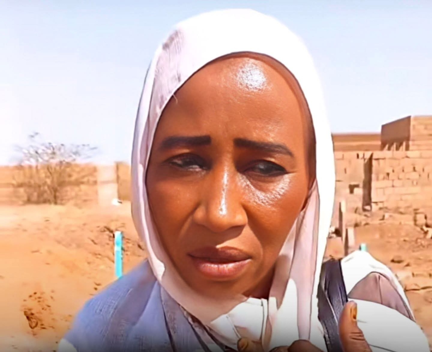 وكانت المرأة قد جهزت الأرض بالأساسات والطوب للبناء قبل النزوح، إلا أن الحرب حالت دون إكمال المشروع، وعند عودتها وجدت الطوب المستخدم تم تحويله إلى شواهد قبور على الأرض التي كانت تنوي البناء عليها.