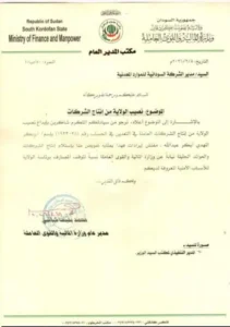أثار خطاب رسمي صادر عن وزارة المالية والقوى العاملة بولاية جنوب كردفان موجة واسعة من الجدل في الأوساط القانونية والإدارية، بعد مطالبته بتحويل أموال عامة إلى حساب مصرفي شخصي، في خطوة اعتبرها مراقبون “سابقة خطيرة” في إدارة المال العام.
